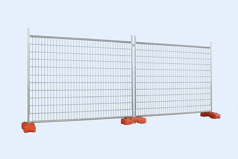 Production Australian temporary fencing Panel height*length 2.1*2.4m, 2*2.2m, 2.1*2.6m, 1.8*2.4m, etc Wire diameter 3mm, 4mm etc Mesh opening 60*150mm, 75*75mm, 75*100mm, 60*75mm,etc Frame pipe Diameter:32mm,  42mm, 60mm etc Wall thickness:1.5mm, 2.0mm ,etc Zinc Heavy duty:Pipe 300g/m²,42 microns;Wire 200g/m², 28 microns Light duty:Pipe 100g/m²;Wire 100g/m² Clamp Center space:75mm, 100mm Width:40mm Thickness:4mm Feet Blow moulded:600*220*150mm(26.5kgs) Injection moulded:560*2...